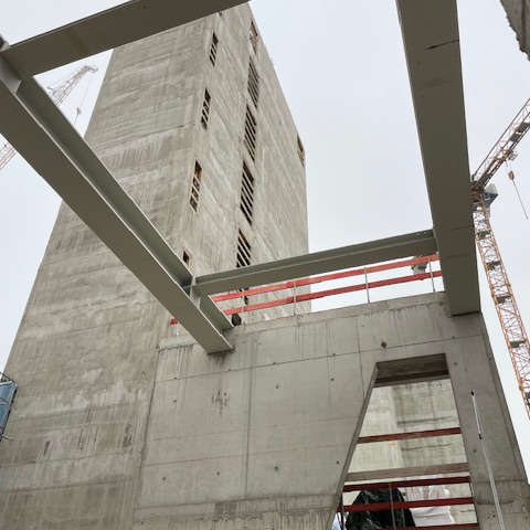 In unmittelbarer Nähe zum Münchner Ostbahnhof realisieren wir derzeit ein anspruchsvolles Bauvorhaben, das unsere Kompetenz in Sachen Schnelligkeit und Präzision unterstreicht. Innerhalb von nur drei Monaten (Januar bis März 2026) haben unsere Teams bereits das 5. Obergeschoss erreicht – ein Beleg für den enormen Montagefortschritt und die logistische Schlagkraft unseres Unternehmens.