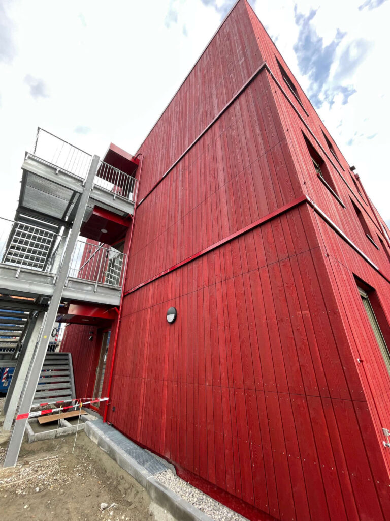 Das dreigeschossige Gebäude kombiniert serielle Werksfertigung mit ökologischer Holzhybridbauweise für maximale Termintreue. Barrierefrei nach DIN 18040 konzipiert, bietet das Projekt flexible Wohnraummodule, hohe Ausführungsqualität und eine exzellente CO₂-Bilanz zur schnellen, hochwertigen Unterbringung im urbanen Raum.